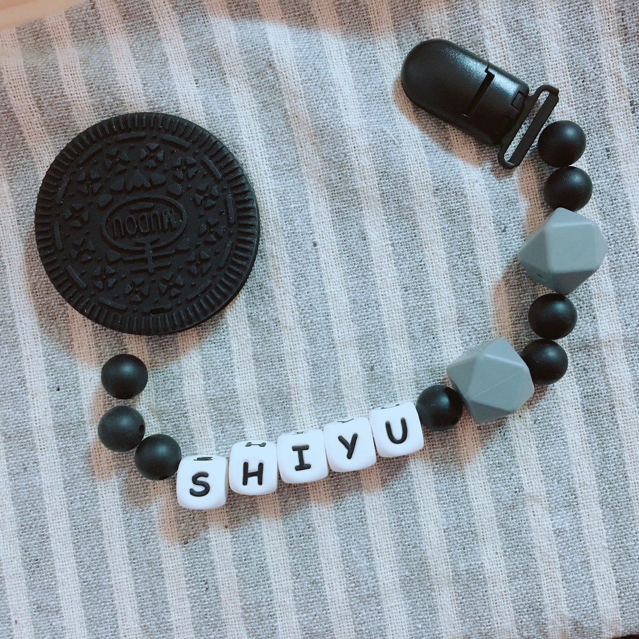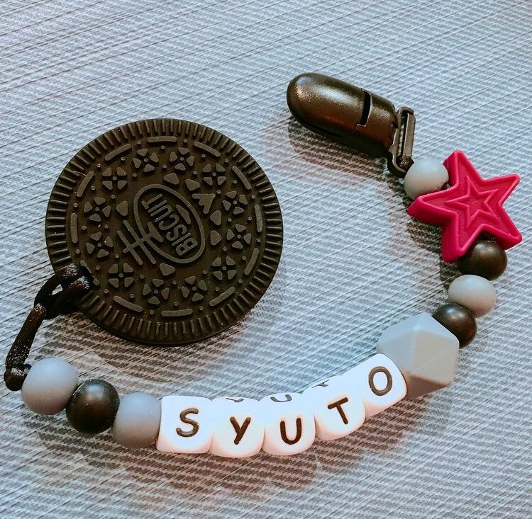 ベビーブラックビスケット名入れ歯固めホルダー♡丸洗いできるオールシリコンタイプ