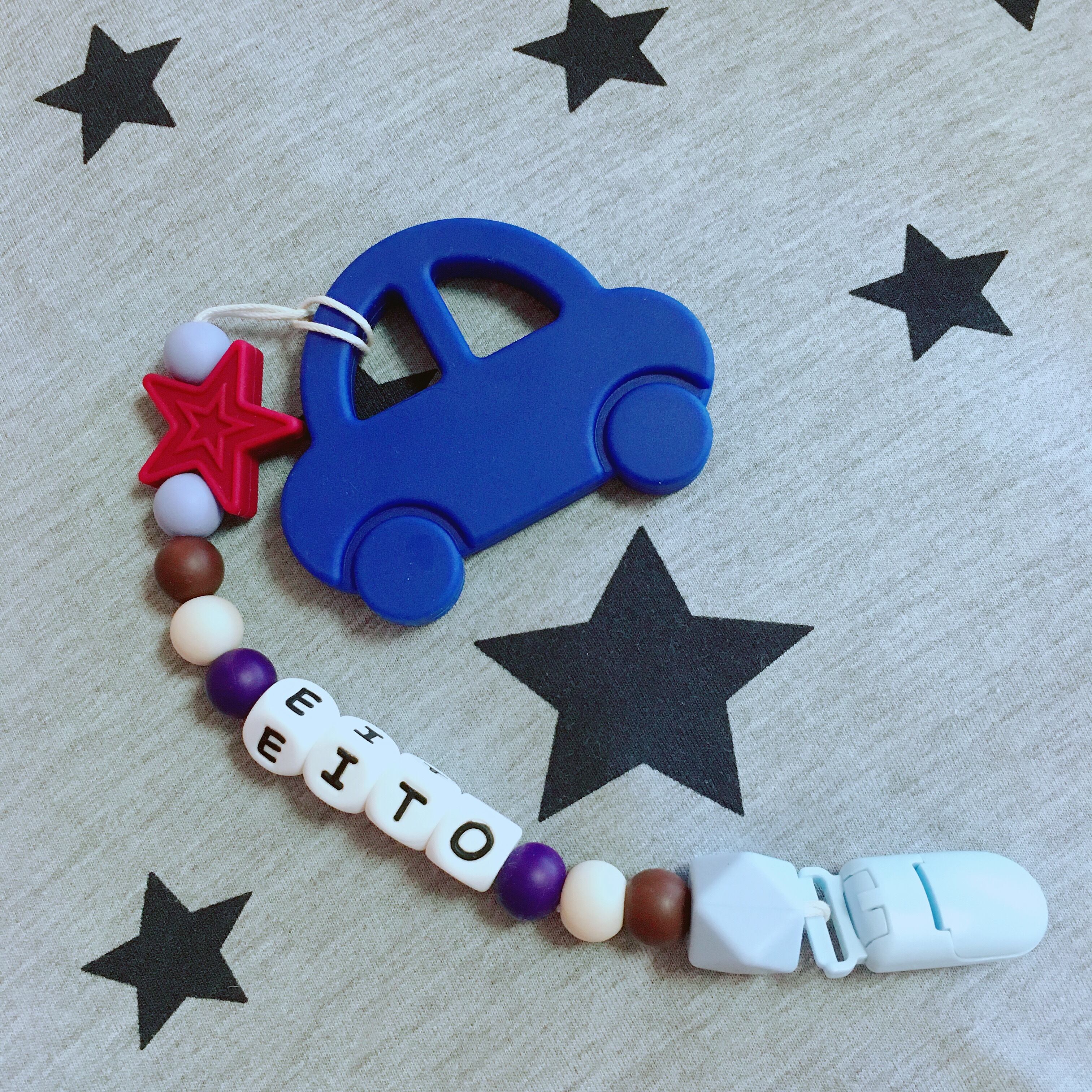 出産祝い、百日祝い、ハーフバースデーのプレゼントにぴったりの、名入れ歯がためおもちゃ^ ^