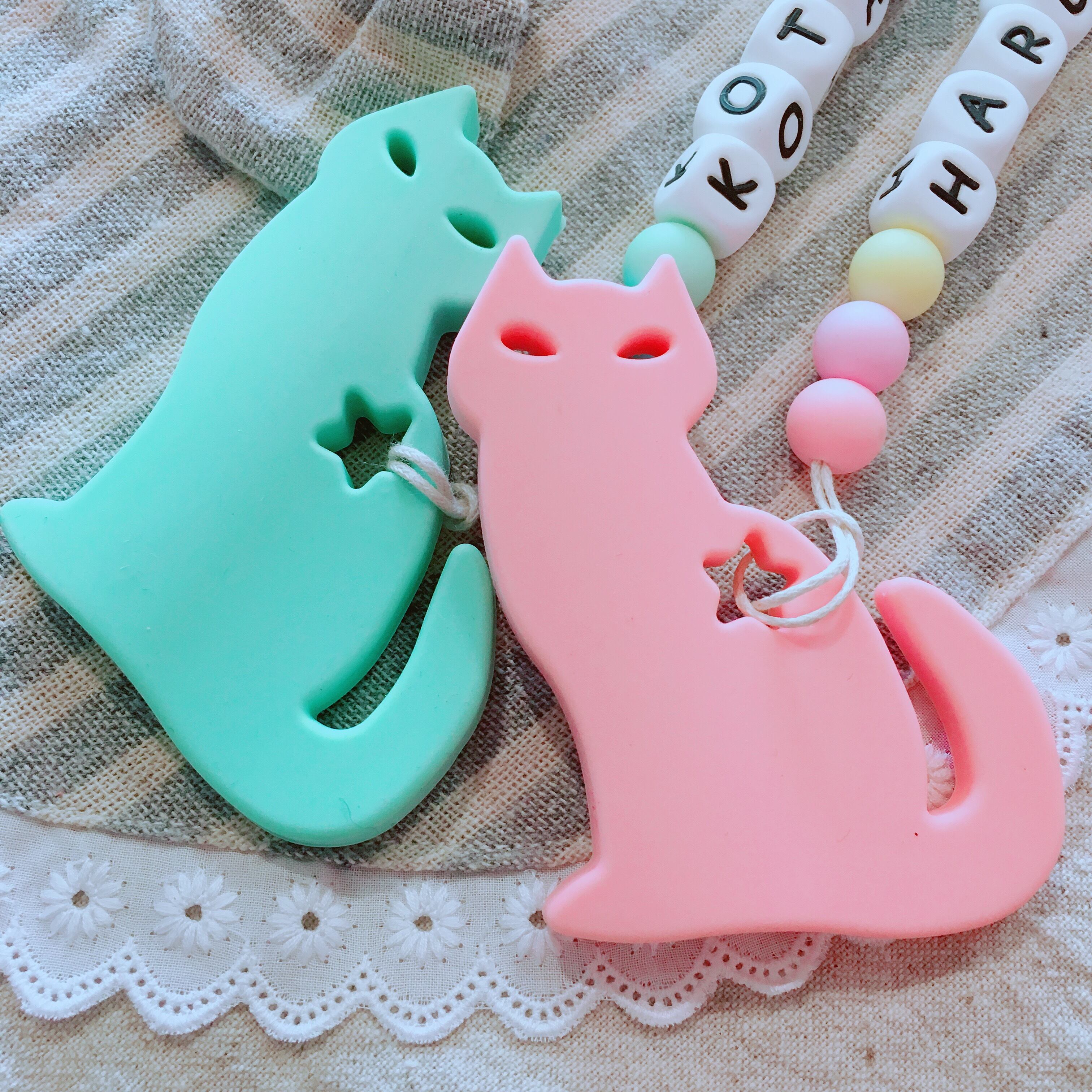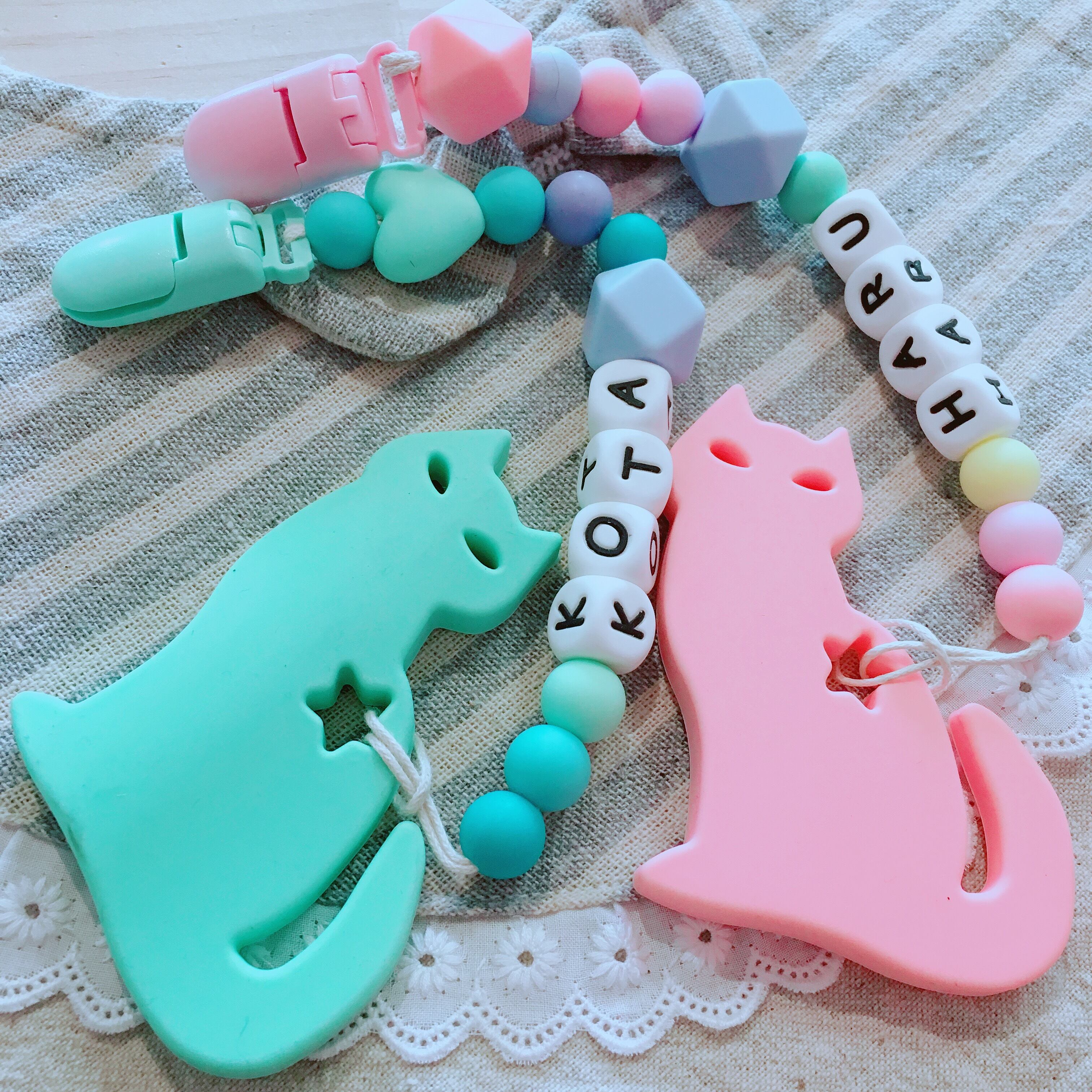 出産祝い、百日祝い、ハーフバースデーのプレゼントにぴったりの、名入れ歯がためおもちゃ^ ^