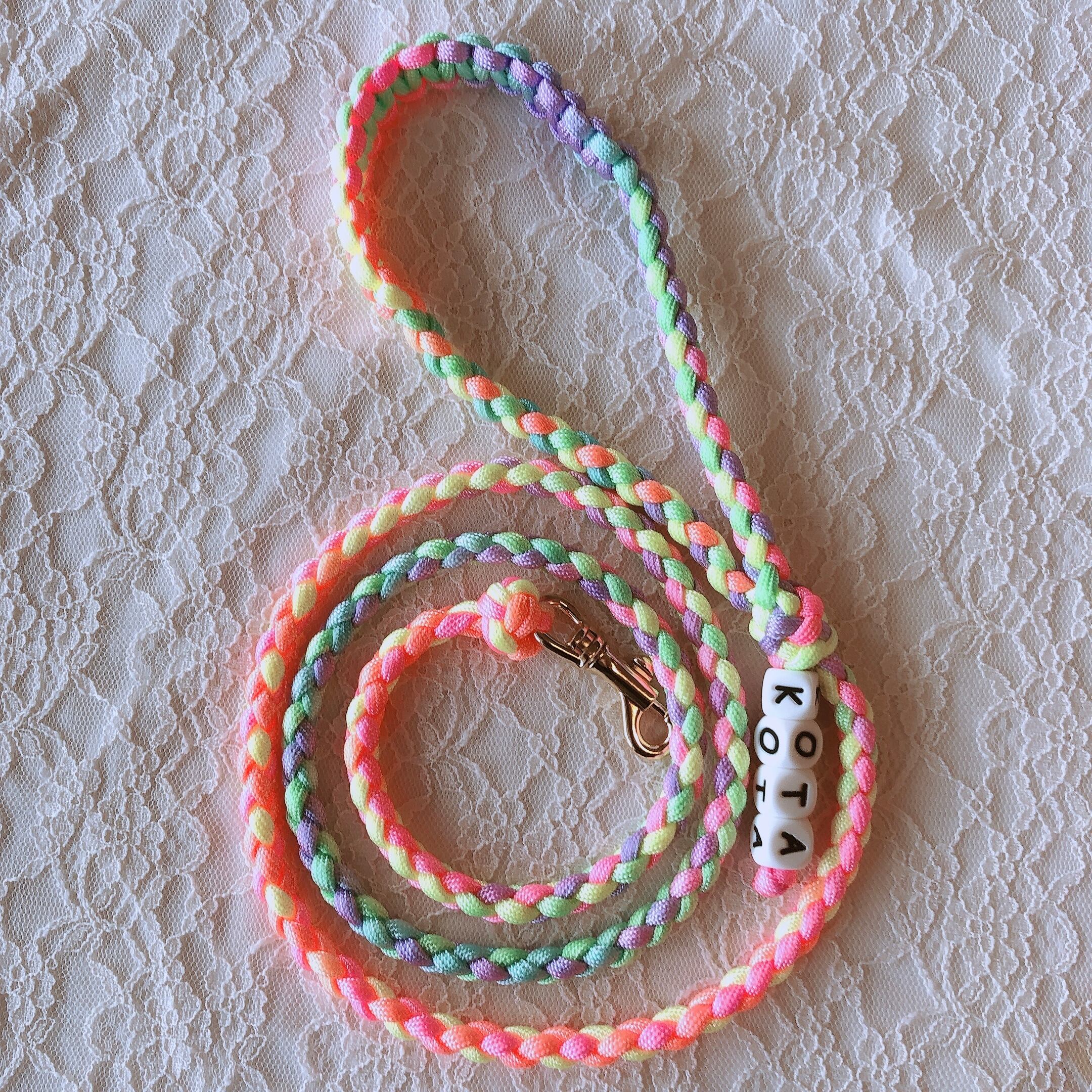 ●4本編みは、一本でも強いパラコードの安全性を生かしつつ、ちいさな小型犬の子にも似合う、華奢でしなやかなリードです。